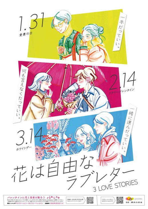 このイベントは、フラワーバレンタインだけでなく、「3 LOVE STORIES 〜愛の花贈り月間」として、