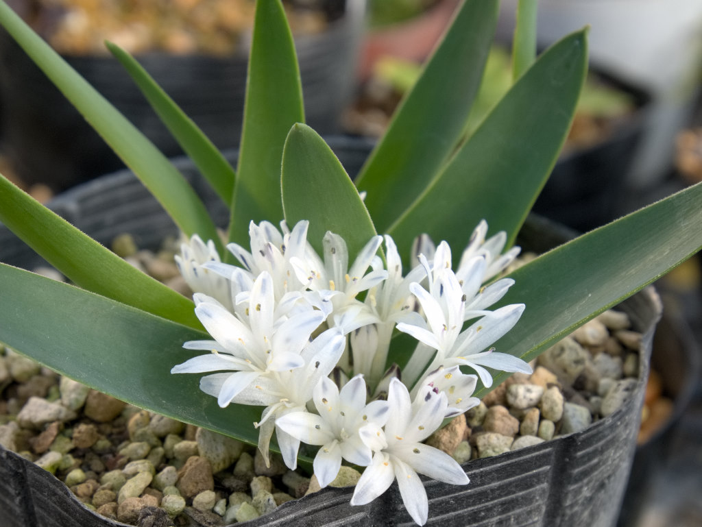 本格的な開花はこれからですが、日だまりになる石垣の上のものが咲き始めました。この品種はまばらに咲くタイプです。