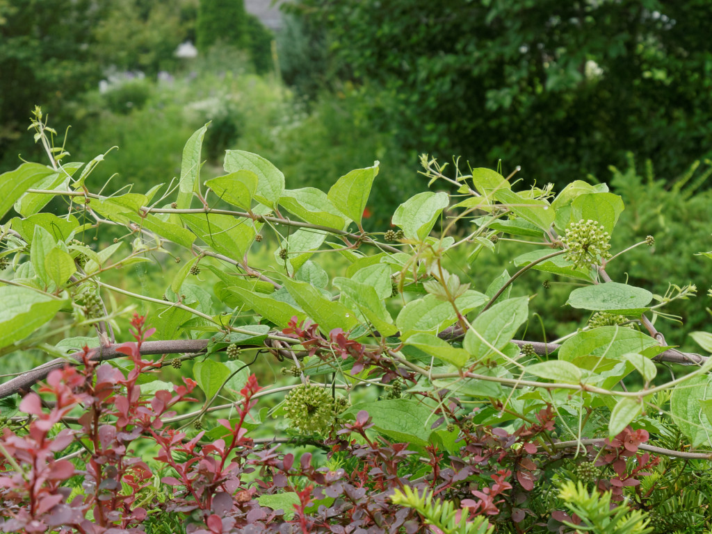 緑のぼんぼりのようなつぼみはこれからお花を開きます。緑白色で目立つものではありませんが、イケマやガガイモの