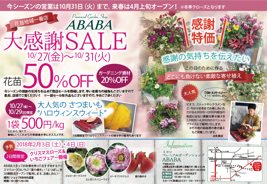 ガーデンShop ABABA 『大感謝セール』を