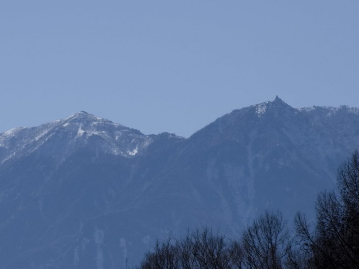 鳳凰三山の主峰、観音岳と北側の地蔵岳です。小淵沢からですと手前にある地蔵岳のほうが高く見えますが、実際には左のピークの観音岳のほうが 80mほど高くて 2800mを越えています。