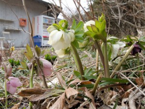 本格的な開花はもう少し暖かくなってからですが、原生地では雪解けを待って咲く性質からか、今年は寒さが緩むと同時に咲き始めました。例年より早く咲いたと思います。暖かい年では写真で枯れて写っている前年の葉が、冬枯れせずに常緑のまま残っていることがあります。