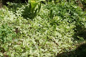 ガーデンに広がるアエゴポディウムとラミウム・ガレオブドロン。