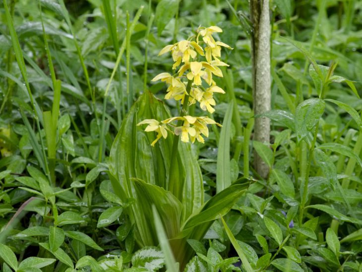 日本の野生ラン、ジエビネとキエビネの自然交雑種です。ややうつむき咲きになっていることからヒゴエビネか、サツマエビネかもしれません。ヒゴエビネはキリシマエビネとキエビネの、サツマエビネはタカネエビネとキリシマエビネの自然交雑種です。