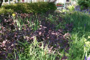 明るい半日陰に広がる銅葉の宿根草がファイヤークラッカーです。