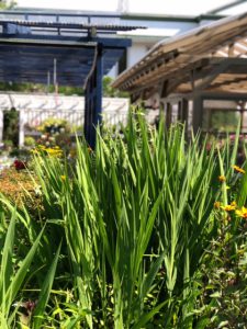 私の身長程ある草丈。開花はまだもう少し先ですが、このシュッとした葉だけでも存在感あります。