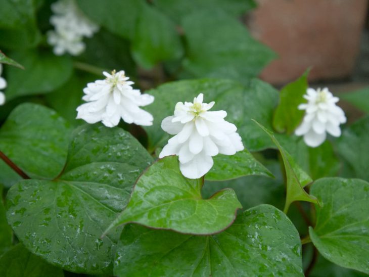 普通のドクダミはわざわざ植えようとしないと思いますが、五色ドクダミだったり八重咲きだったりすれば急に注目のお花となります。派手な斑入りの五色ドクダミは、青葉にくらべると生育がゆっくりではびこりませんが、八重ドクダミは丈夫でとても良く増えます。