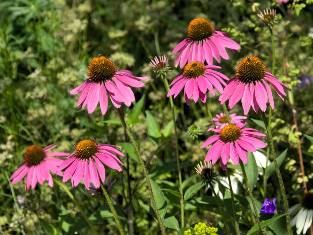 今では夏の宿根草を代表するお花の一つに生長して、エキナセアの学名ままの呼び名で広まっています。毎年新品種が発表され、八重咲きや二色咲き、グリーンやえんじ色など変わった色合いの品種も増えてきました。