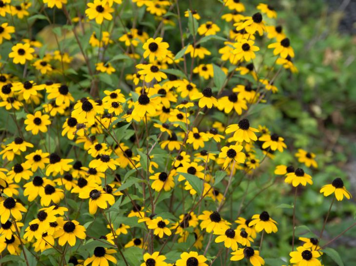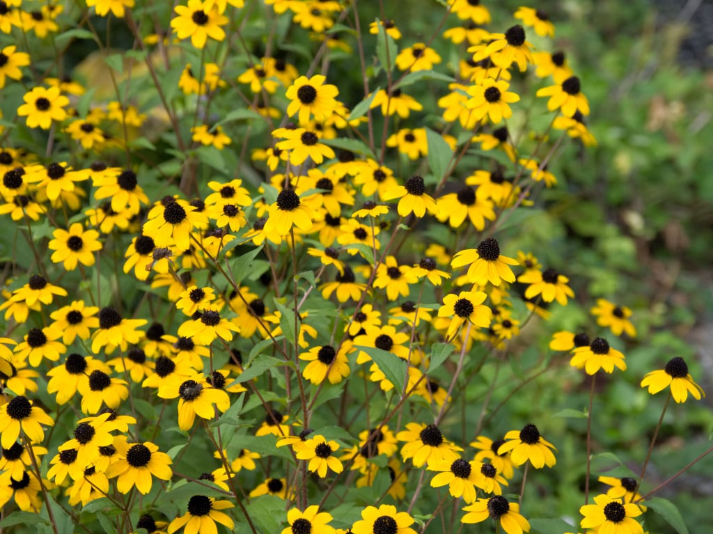 ルドベキアの中でも分枝性が強くて、小さなお花をいちめんに賑やかに咲かせる種類です。耐暑性も強くて日焼けもしないので、夏の花壇では定番中の定番といっても良いものです。