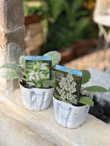「バチカンホワイト」はクラリーセージの白花種。こちらは耐寒性2年草。