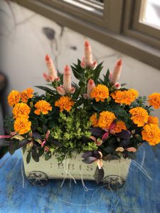 セロシアとマリーゴールドでこんなキュートに。