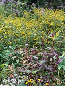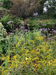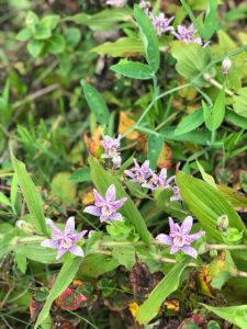 茎が倒れているんだけど花がキレイな「シモバシラ」と「ホトトギス」