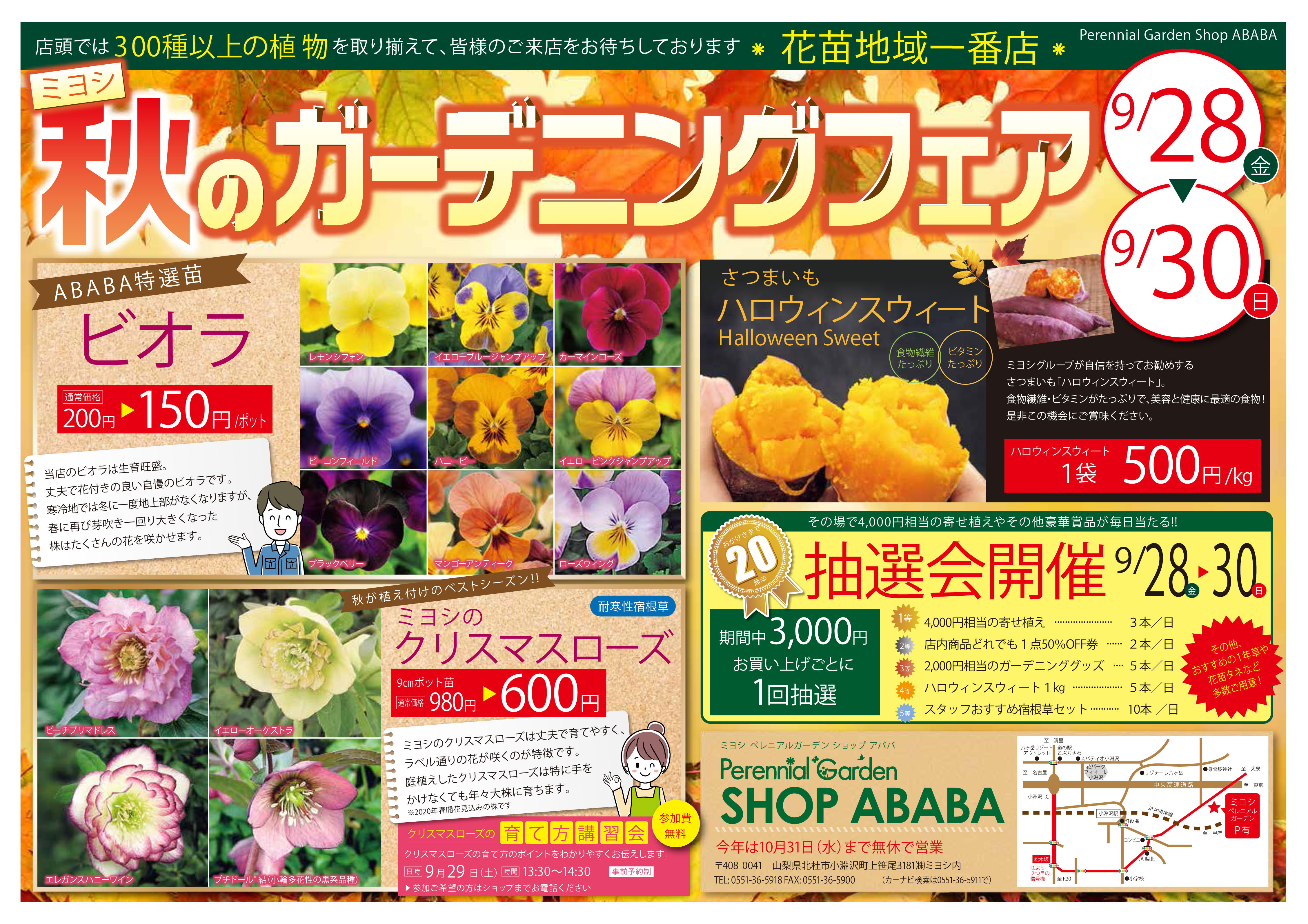 ABABA 今週末は是非「秋のガーデニングフェア」へ!! 9月27日