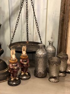 左からうさぎの置き物、LEDボトル、キャンドルホルダー。