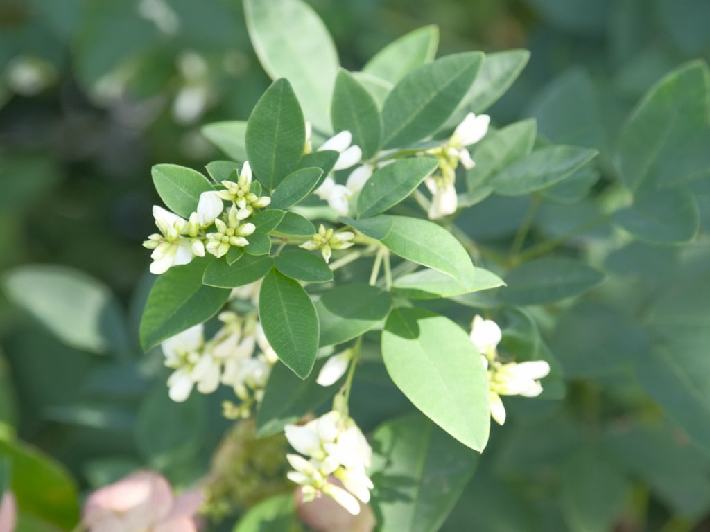 ミヤギノハギ(宮城野萩)の白花変種で、ガーデン向きの萩としてとても人気の高い落葉低木です。暖地では夏から咲くことも多く、刈り戻して秋遅くにお花を楽しむことも行われます。