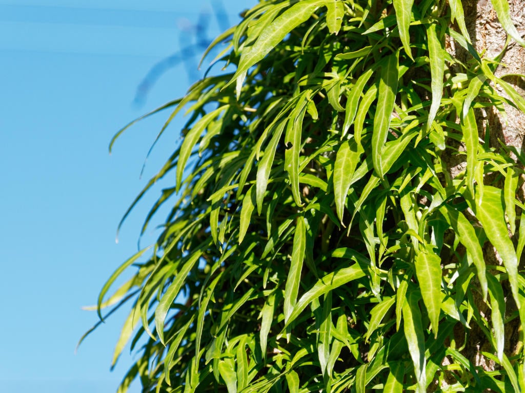 グリーンの細葉アイビーでかなり昔から流通する品種ですが、品種名が不明です。アイリッシュ・レースと似ていますが別品種のようです。ガーデンでは梅の樹の幹を伝うように伸びて、春と秋は明るい緑、夏は濃い緑を見せてくれます。まさに青葉のアイビーといって良い種類です。