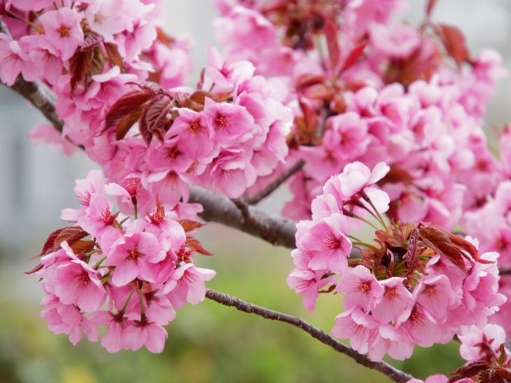 写真の桜は早咲きで病気に強い、新しい品種の一つです。さくら色というにはずいぶんと濃いピンクのお花で、とても華やかな雰囲気があります。今後は各地でソメイヨシノと違った、新しい桜の名所が生まれるかもしれません。
