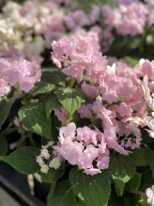 ふんわりとしたベビーピンクの山アジサイ。
