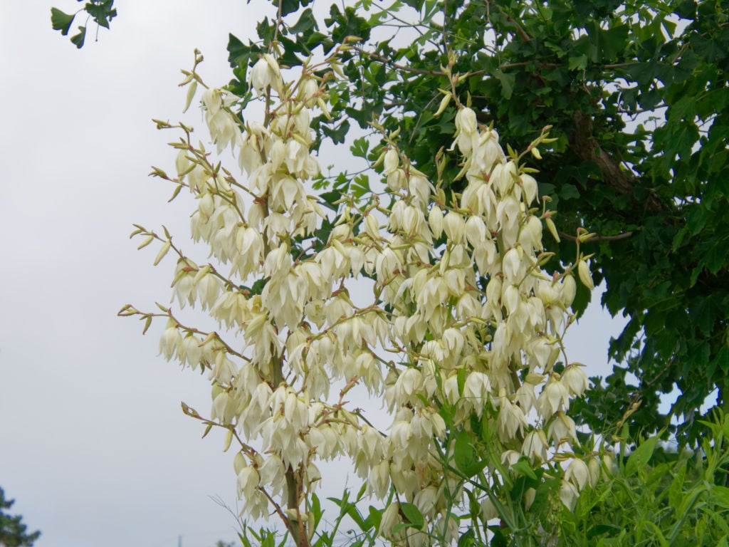 イトランもキミガヨランも同じユッカ属の植物ですが、耐寒性はイトランのほうがかなり高くて、小渕沢でも特に手をかけることなく冬越ししてくれます。キミガヨランは暖地の街路樹に使われることも多く、暖地にお住まいの方には身近なお花だと思います。